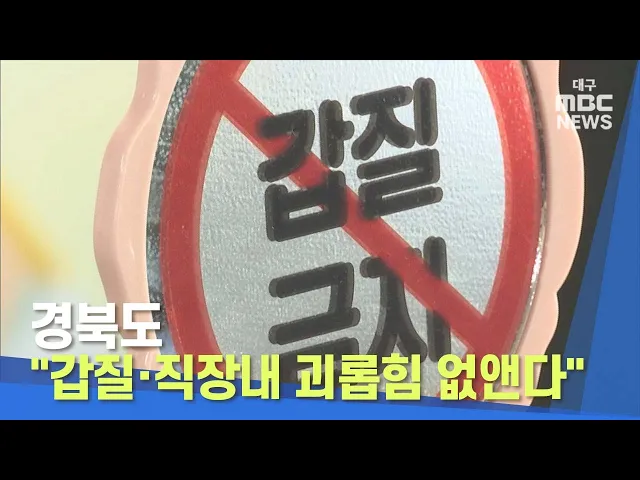 경상북도가 이른바 '갑질'과 직장 내 괴롭힘 같은 불합리한 조직 문화를 바꾸겠다고 밝혔습니다.공직사회의 오래된 관료주의 관행인 간부 공무원 식사 모시기와 출장, 식사 등을 위한 하위직 공무원의 차량 대기 문화도 바꾸기로 했습니다.조직문화 정화시스템을 만들기 위해 변호사 자격을 가진 인권보호관을 채용하고 인...
