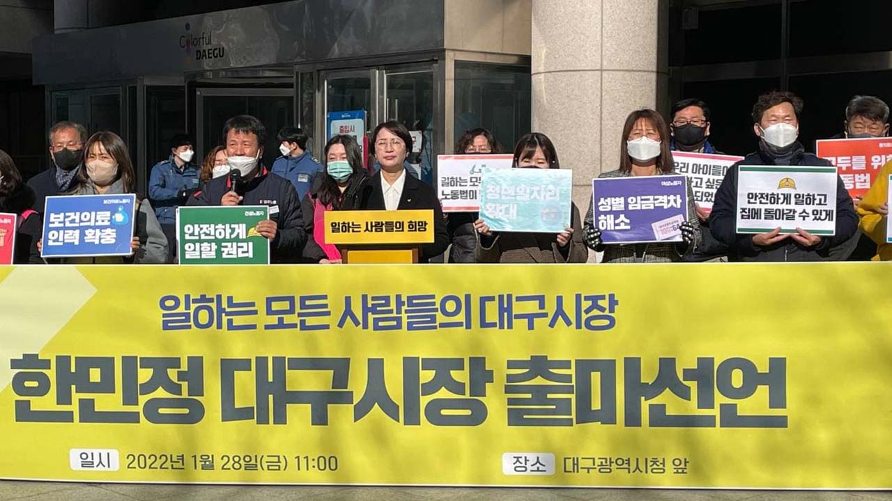 한민정 정의당 대구시당 위원장이 대구시장 출마를 선언했습니다.한민정 위원장은 '일하는 모든 사람의 대구시장'을 표방하면서 "노동정책이 바로 서는 대구시를 만들겠다"고 밝혔습니다.정의당은 1월 27일 대구시당 당사에서 대선 결의대회를 열고 심상정 정의당 대선후보의 승리를 위한 결의를 다졌습니다.