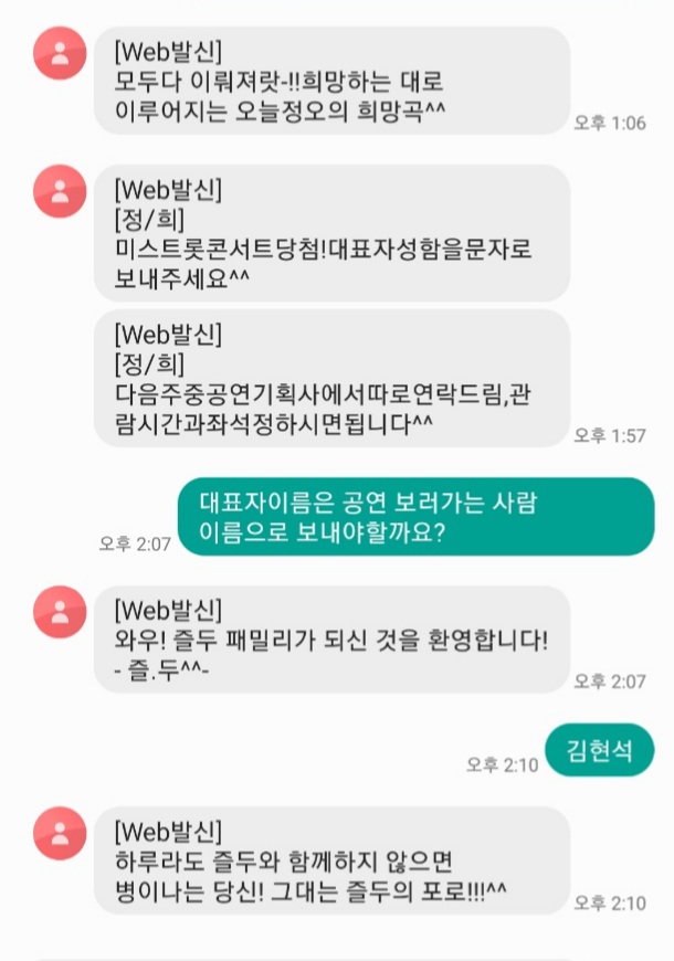 정오의 희망곡 정오의 희망곡 일 월 화 수 목 금 토 12시 00분 로컬방송 홈 코너소개 제작진에게 선곡표 제작진에게 당첨자 확인 부탁드립니다. 조회수 : 102 금일 당첨되었다고 문자 받았고 대표자 성함을 제이름으로 보내드렸는데 다음시간 프로에서 문자가 왔더더라구요 정확히 접수되었는지 확인 부탁 드립니다.접수자번호는 핸드폰 뒷번호 2753 입니다 여러분의 의견을 남겨주세요 ※ 댓글 작성시 상대방에 대한 배려와 책임을 담아 깨끗한 댓글 환경에 동참해 주세요. 0/300 등록 수정 삭제 이전글 다음글 목록