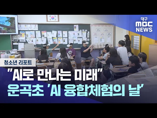 ◀앵커▶최근 챗GPT를 비롯한 인공지능 기술에 관심이 높아지면서 교육 현장에서도 학생들의 인공지능 학습이 적극적으로 이뤄지고 있습니다.경북 김천 운곡초에서 전수아 MBC 청소년 기자가 그 현장을 전해드립니다.◀기자▶이곳은 'AI 융합 체험의 날'이 열리고 있는 운곡초등학교입니다.강당에서는 ‘생성형 AI와 미래 사회’...