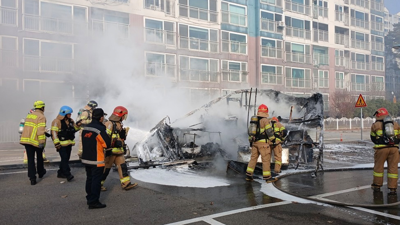 경북 칠곡군 아파트 주차장에서 캠핑카 화재···전기적 원인 추정