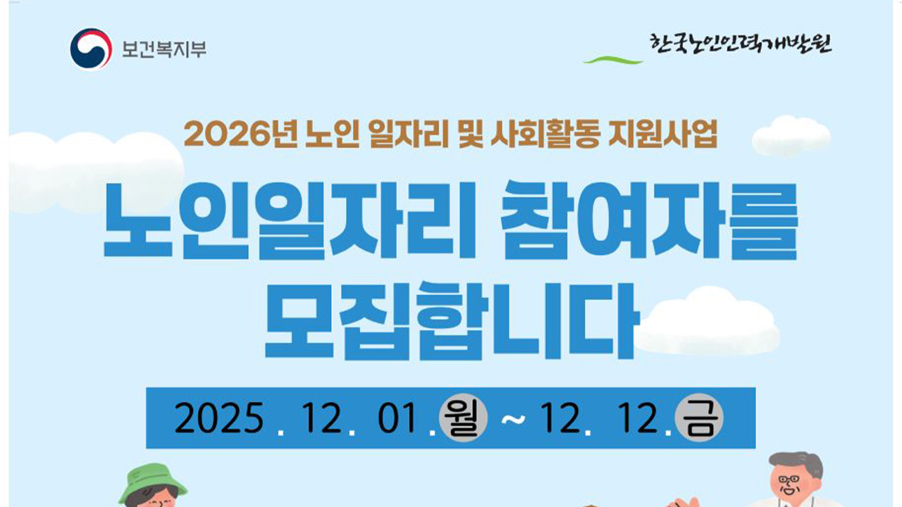 경북 김천시가 2026년 노인 일자리 참여자 4,477명을 모집합니다.모집 기간은 12월 12일까지로, 참여 자격은 노인 공익 활동의 경우 65세 이상 기초연금 수급자, 노인 역량 활용 사업은 65세 이상, 공동체 사업단은 60세 이상입니다.생계급여 수급자와 건강보험 직장가입자, 장기 요양 보험 등급 판정자, 다른 부처 재정 일...