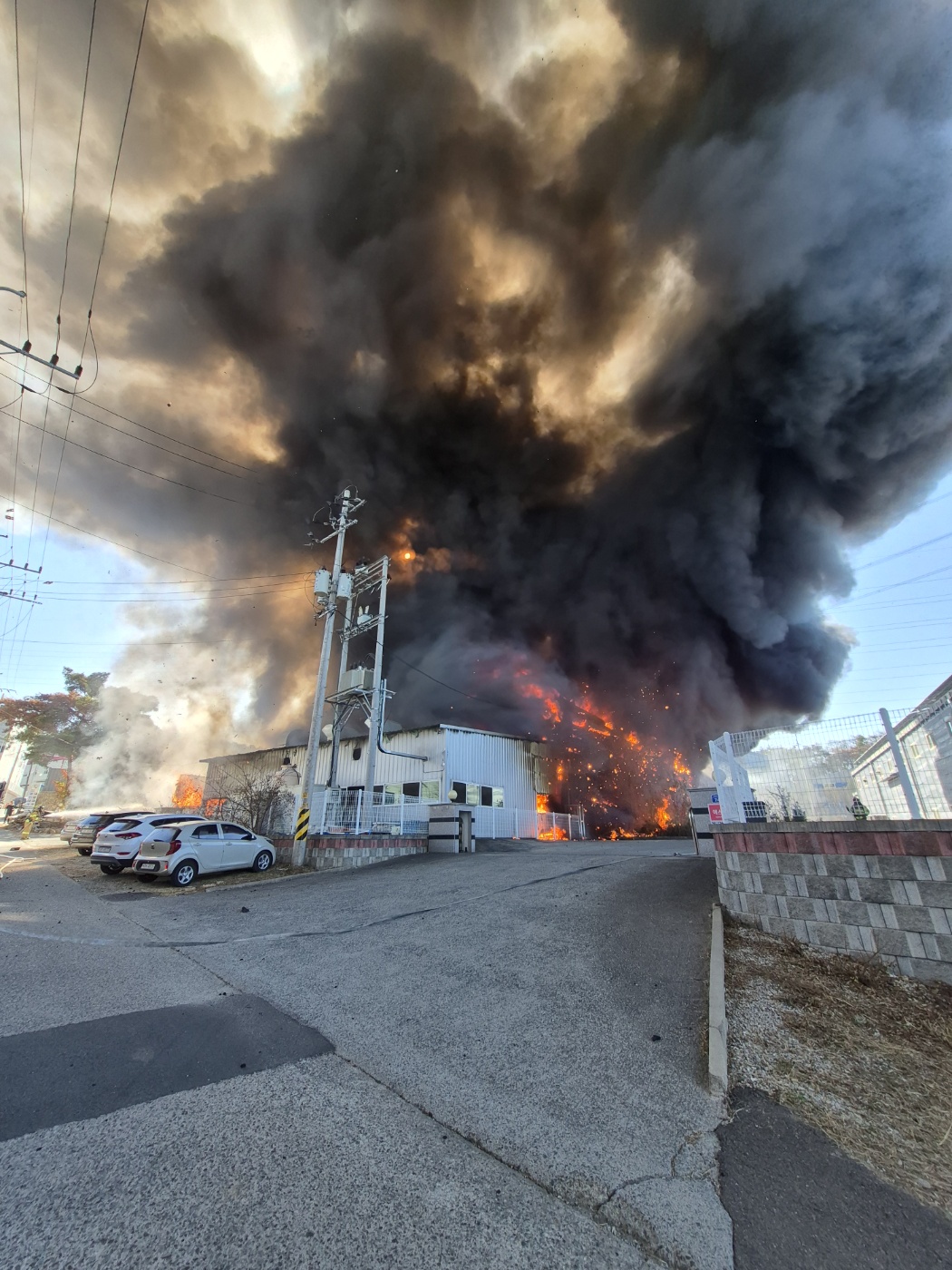 칠곡 왜관 섬유 공장 화재로 4개 동 불에 타