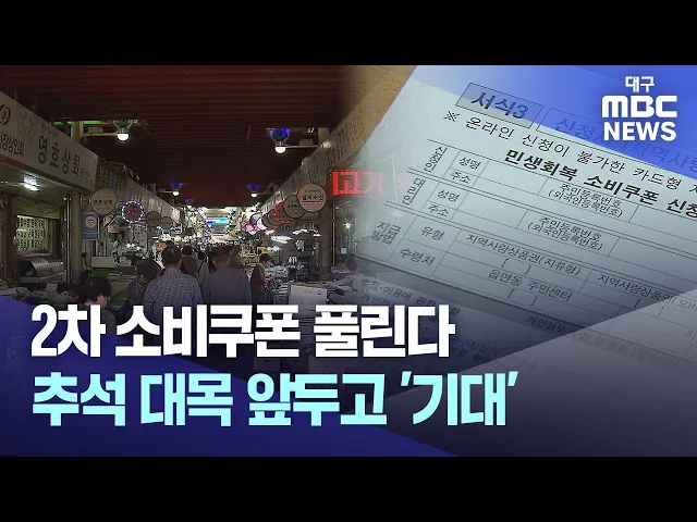 ◀앵커▶정부가 다음 주부터 2차 민생회복 소비쿠폰을 지급을 시작합니다.1차 지급 때 확인된 소비 진작 효과에 이어, 추석 대목 경기에도 힘이 될 전망입니다.엄지원 기자가 보도합니다.◀기자▶추석을 앞둔 전통시장.2차 민생 회복 소비쿠폰 지급을 앞두고 장 보는 시민들 사이에 기대감이 묻어납니다.◀박춘영 안동 시민▶ "...