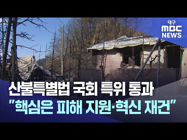 ◀앵커▶초대형 산불 특별법이 9월 18일, 국회 산불특위 전체 회의를 통과해 이제 법사위와 국회 본회의 의결만을 앞두고 있습니다. 산불 진화, 약 2백일 만입니다.그동안 피해 지역민들은 충분한 보상이 이뤄지지 않고 있다고 지적했는데, 특별법으로 지원 사각지대가 해소될지 법안 내용을 살펴봤습니다. 기존 재난법이 구...