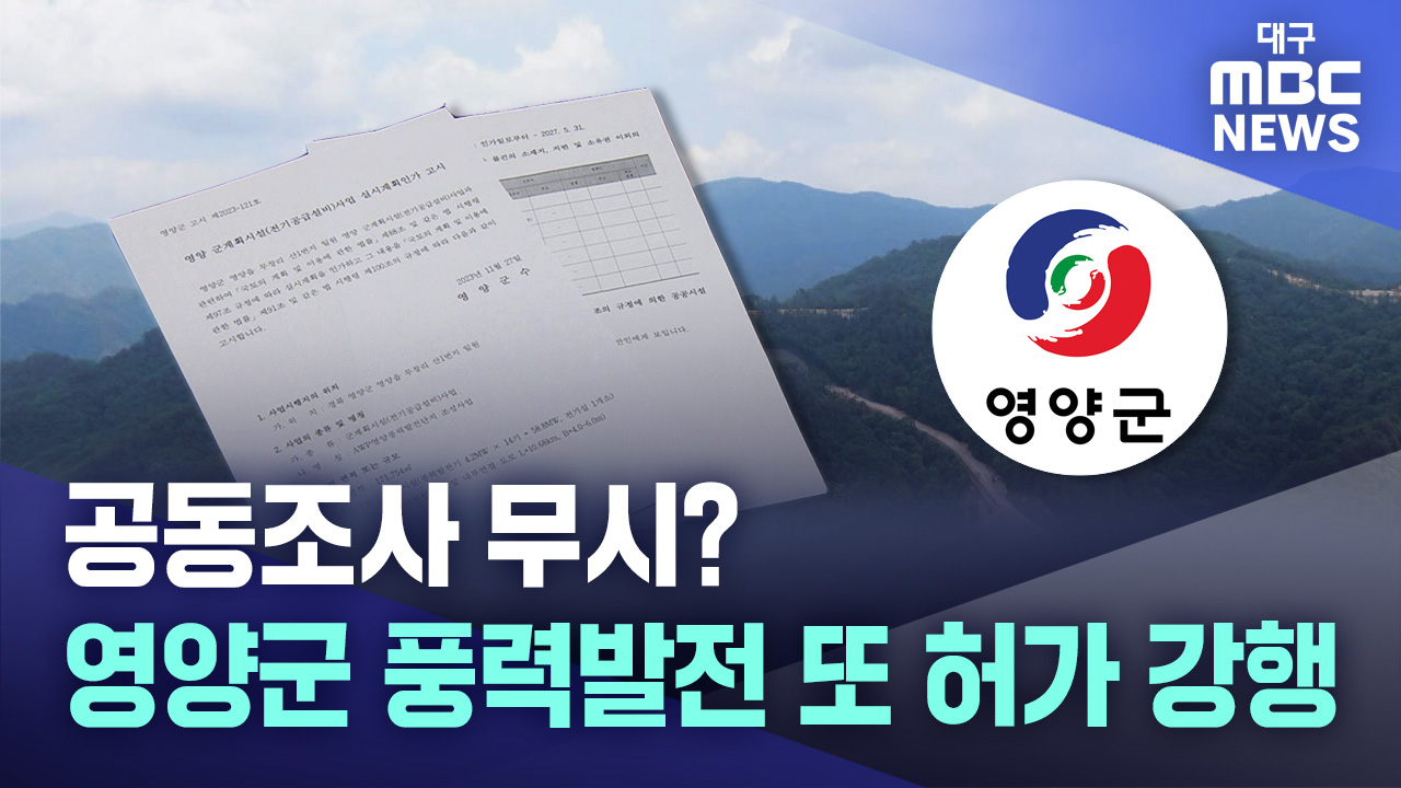◀앵 커▶경북 영양군이 최근 풍력발전기 14대를 무창리 일원에 설치하는 사업에 대해 최종 실시계획인가를 내줬습니다.멸종위기종인 산양 등의 대한 조사가 누락돼 사업자의 평가서를 환경부 공동조사단이 다시 들여다보고 있는 시점에서, 영양군이 허가를 강행한 겁니다. 절차상의 문제는 없는지 이도은 기자가 따져봤습니...