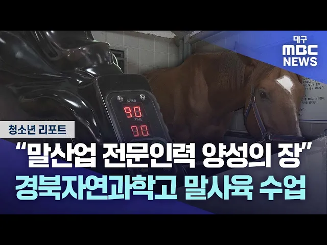 ◀앵커▶청소년 리포트 시간입니다.오늘은 말 산업 전문 인력을 양성하고 있는 경북자연과학고를 김채량 MBC 청소년 기자가 소개합니다. ◀기자▶이곳은 말산업과가 있는 경북자연과학고등학교입니다.조용한 마장에서 학생들이 말을 다루기 위해 안전 장구를 먼저 착용하고 있는데요. 말의 건강 상태를 확인하고, 안장을 얹고, ...