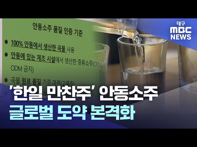 ◀앵커▶지난 주말, 도쿄에서 열린 한일 정상회담 만찬에 안동소주와 안동찜닭이 오르며 주목받고 있는데요.최대 규모의 안동소주 공장이 첫 삽을 뜨면서 글로벌 전통주로의 도약을 준비하고 있습니다. 엄지원 기자가 보도합니다.◀기자▶안동소주가 수출 확대를 위한 첫 삽을 떴습니다.최대 규모의 안동소주 양조장 건립을 위...
