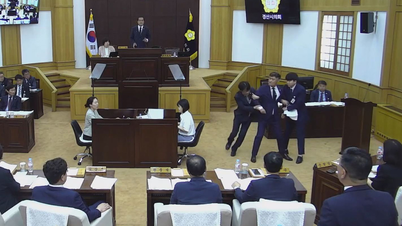 후쿠시마 오염수 반대 발언하자···경산시의원, 회의장에서 강제로 끌려 나가