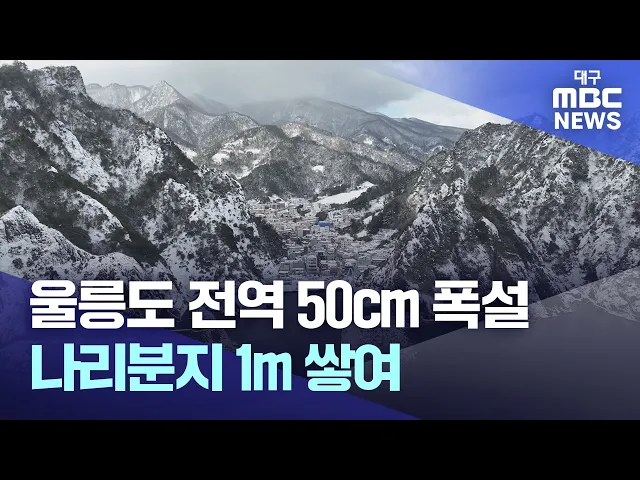 ◀앵커▶지난 2월 6일부터 울릉도 전역에 50cm가 넘는 폭설이 내리면서 주민 불편이 커지고 있습니다.나리분지에는 1m 가까이 쌓였는데요,울릉군은 앞으로 기상 상황이 호전될 것으로 보고 있지만, 도로 결빙에 대비해 제설 작업에 속도를 내고 있습니다.이규설 기잡니다.◀리포트▶화산 분화구가 함몰되며 형성된 울릉도 나리...