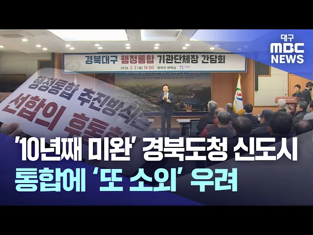 ◀앵커▶대구·경북 행정 통합이 점차 현실화하고 있는 가운데, 경북 북부 지역에선 우려의 목소리가 갈수록 커지고 있습니다.도청 이전 당시 내세웠던 ‘균형 발전’은 아직 현실이 되지 못한 상황에서, 통합이 오히려 북부 지역을 더 소외시키는 것 아니냐는 건데요.경북 북부권 주민과 정치권의 반발을 김경철 기자가 들어봤...
