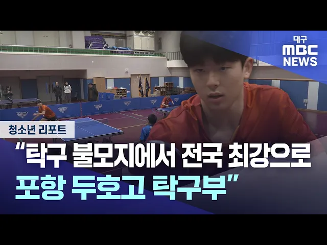 ◀앵커▶청소년 리포트 시간입니다.2월 6일은 전국 남녀 중고 학생 종합 탁구대회 단체전에서 3연패를 차지하며 전국 최강의 팀으로 자리매김한 포항 두호고 탁구부를 김성원 MBC 청소년 기자가 소개합니다.◀리포트▶이곳은 포항 두호고등학교 체육관입니다.전국 대회를 준비하는 탁구부 학생들이 구슬땀을 흘리며 훈련을 하고...