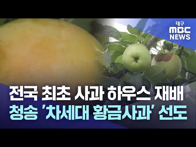 ◀앵커▶갈수록 심해지는 극한의 기후에 대응해서 사과 농업도 하우스 재배가 미래 대안으로 떠오르고 있는데요,전국 최대 사과 주산지인 청송군에서 국내 처음으로 사과 하우스 재배가 시도 중입니다.사과 품종은 '골든볼'이라는 국산 신품종인데요.노른 빛깔에 새콤달콤한 맛이 일품이어서 청송사과 브랜드 '황금사과'의 여...