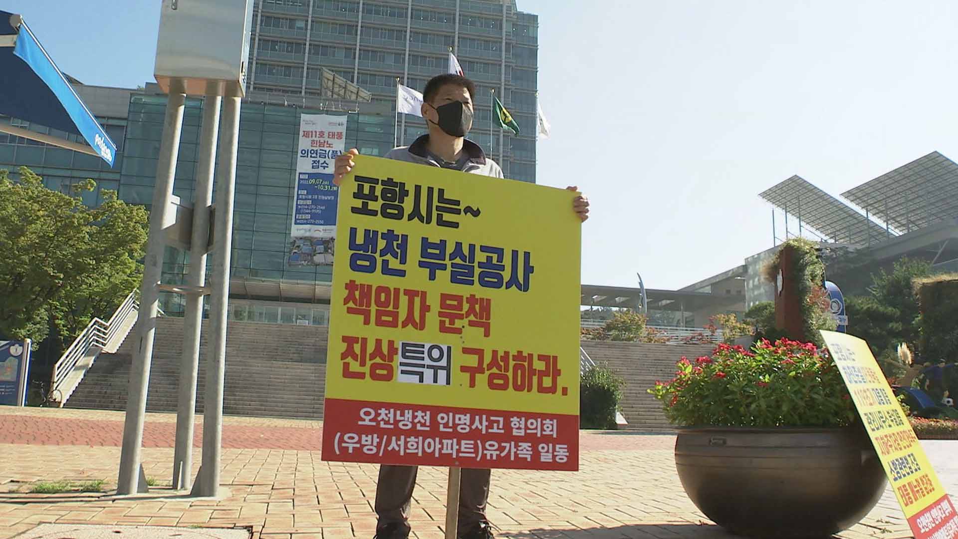 '지하 주차장 사고' 냉천 유가족, 포항시청 앞 무기한 천막 농성 돌입