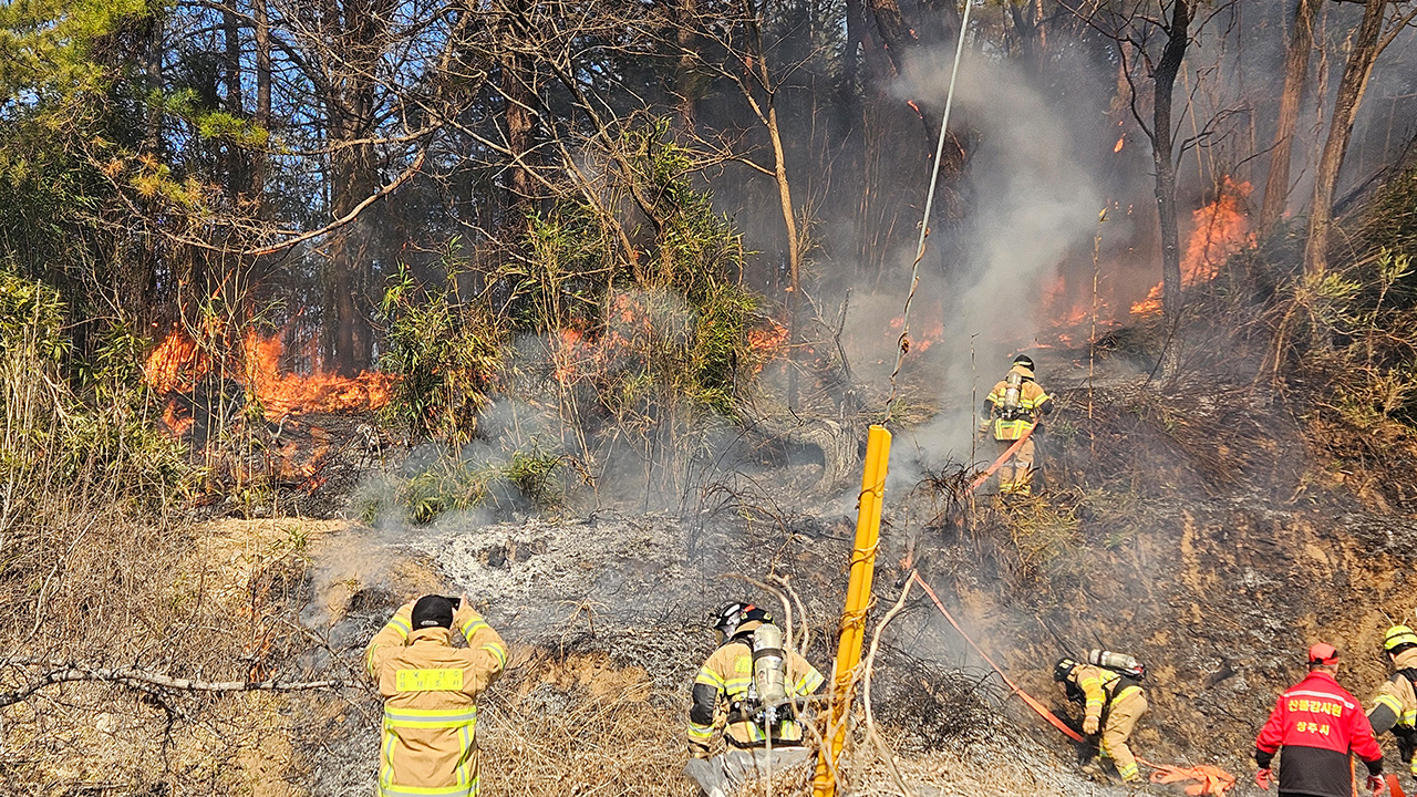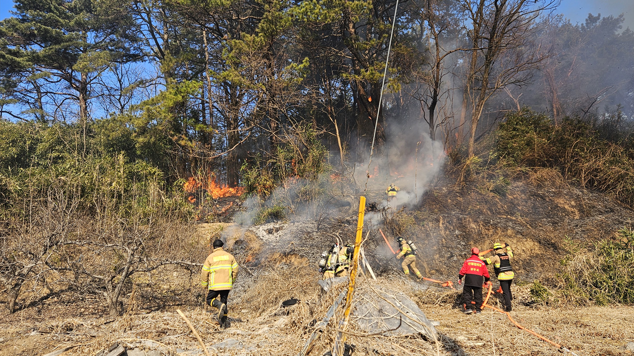 2월 6일 오후 1시 4분쯤, 경북 상주시 공검면의 한 야산에서 불이 났습니다.소방 당국은 헬기 3대와 인력 등을 투입해 진화 작업을 벌이고 있습니다.현재까지 다친 사람은 없고, 불은 야산에 있는 묘지 주변에서 시작된 것으로 알려졌습니다.