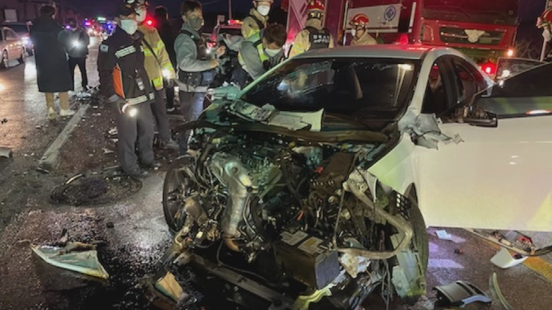 2월 7일 저녁 6시쯤 경북 김천시 아포읍의 한 사거리에서 구미에서 김천 방향으로 달리던 벤츠 승용차가 중앙선을 넘어 반대편 차로에서 신호를 기다리던 3.5t 트럭 등 차량 4대를 잇달아 들이받았습니다.이 사고로 벤츠 운전자와 동승자 등 3명이 병원으로 옮겨졌지만 숨졌고, 50대 화물차 운전자가 경상을 입었습니다.경...