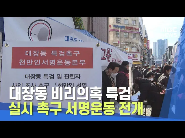 국민의힘 당원과 보수 인사로 만든 대장동 비리 특검 범국민 서명운동 연대는 대구시 중구 동성로에서 경기도 성남시 대장동 개발과 관련된 비리 의혹에 대해 특검을 해 줄 것을 요구하며 시민들을 상대로 서명운동을 했습니다.서명운동 장소에는 홍석준 국민의힘 국회의원, 이인선 전 대구경북경제자유구역청장 등 대구·경...