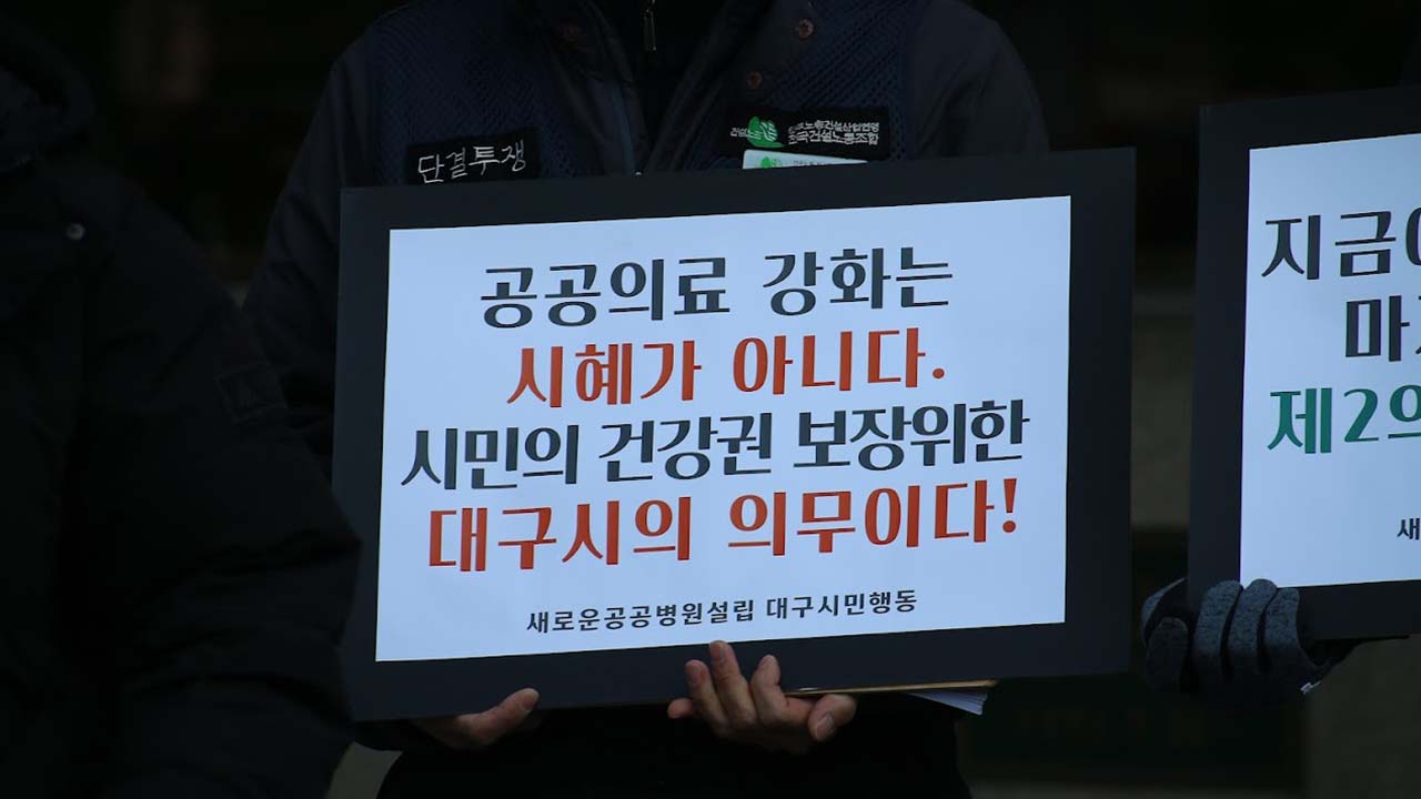 '새로운 공공병원 설립 대구시민행동'이 발족했습니다.대구참여연대와 보건복지단체 연대회의, 대구·경북 인도주의실천의사협의회 등 27개 단체가 함께하는 대구시민행동은 오늘(1월 20일) 대구 시청 앞에서 기자 회견을 열고 “제2 의료원 설립, 대구의료원 확충, 의료공공성 강화를 위한 본격적인 활동에 들어간다”고 밝혔...