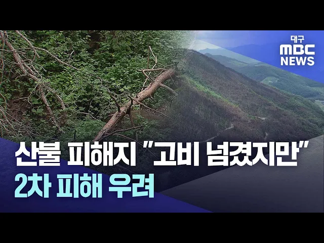 ◀앵커▶지난 나흘간 전국적으로 많은 비가 내린 가운데, 지난 3월 산불 피해 지역을 비롯한 경북 북부지역은 다행히 큰 피해는 비껴갔습니다.하지만 다시 집중호우나 태풍이 오면 피해가 커질까 주민들은 노심초사하고 있습니다.김서현 기자입니다.◀기자▶안동시 용계리 마을로 들어가는 길목.산불의 화기에 벌겋게 죽어있는 ...