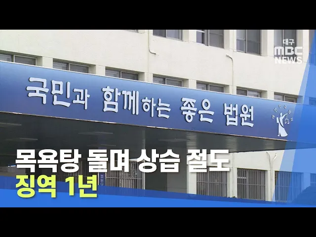 대구지방법원 김재호 판사는 목욕탕을 돌며 상습적으로 금품을 훔친 혐의로 기소된 25살 A 씨에게 징역 1년을 선고했습니다.A 씨는 지난 7월 초부터 한 달여 동안 대구 시내 목욕탕을 돌며 다른 사람의 옷장 열쇠를 훔쳐 옷장 안 물건을 빼가는 수법으로 20여 차례에 걸쳐 천 500만 원어치의 금품을 훔친 혐의로 기소됐습니...
