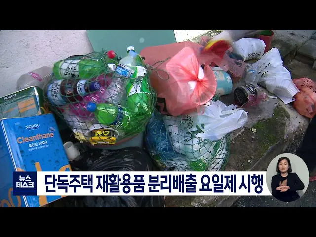 단독주택에서 투명 페트병과 비닐을 따로 버리는 재활용품 분리배출 요일제가 대구 전역에 도입됐습니다.지금까지 재활용품을 통합배출했지만 투명페트병과 비닐은 지역에 따라 화요일이나 수요일 중 지정된 요일에, 나머지 품목은 다른 요일에 내놓아야 합니다.대구시는 재활용품 거점 수거시설 설치를 지원하고 캔·투명페...