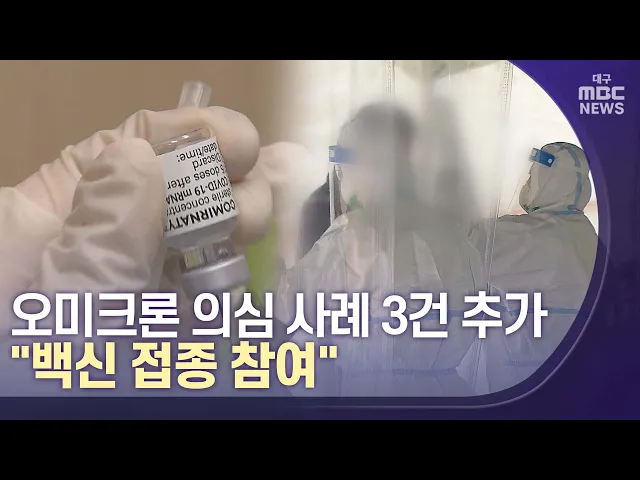 ◀앵커▶어제 첫 오미크론 확진자가 나온 대구에서는 의심 사례 3건이 더 나왔습니다.대구와 경북 양쪽 다 연일 100명 이상 확진자가 나오면서 좀처럼 확산세가 진정되지 않고 있습니다.방역 당국은 오미크론 변이에 대응하기 위해서는 미접종자를 줄이고 3차 접종자를 최대한 늘리는 것이 가장 중요하다고 강조하고 있습니다...
