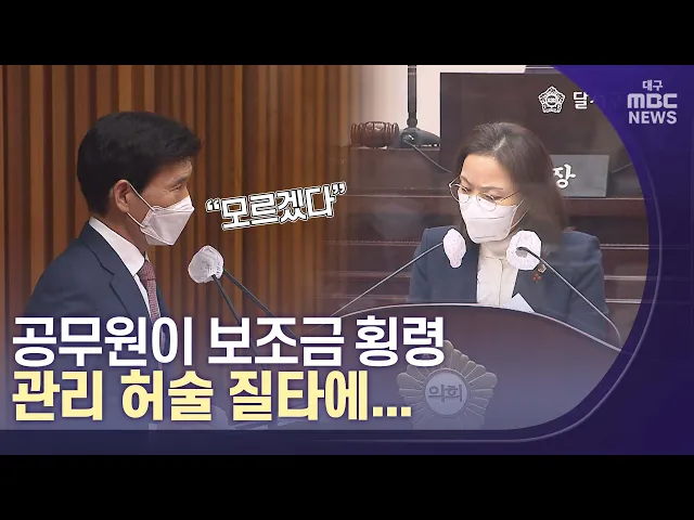 ◀앵커▶대구 달서구청 공무원이 공문서를 위조해서 1억 원이 넘는 국가 보조금을 빼돌렸다 뒤늦게 적발돼 구속된 사건 최근 전해드렸습니다.구의회 본회의에서 구청의 허술한 관리·감독에 대한 의원들의 질타가 이어졌는데요, 구청장은 모르겠다는 말만 할 뿐 끝까지 책임을 지겠다는 말은 하지 않았습니다.손은민 기자입니...