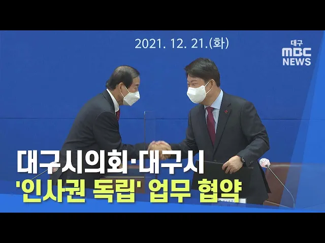 대구시의회와 대구시가 '인사권 독립' 업무 협약을 하고 인사는 독립적으로 하면서도 서로 협력하기로 했습니다.교육 훈련과 후생복지 등은 균형 있게 지원하고 기술직 등 직종에 따라서는 통합 인사를 하고 전출입 등에서도 서로 협력하기로 했습니다.이번 협약은 지방자치법 개정에 따른 것으로 내년 1월 13일부터 의회 ...