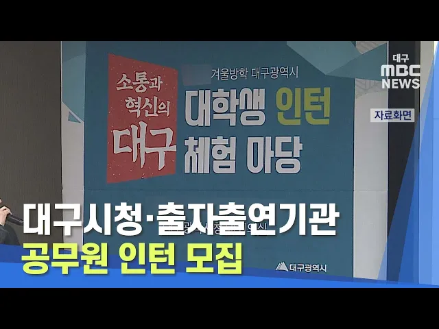 대구시는 내년 1월 17일부터 5주 동안 대구시와 사업소, 출자출연기관 등에서 인턴으로 일할 대학생 132명을 선발합니다.12월 27일까지 대구·경북 대학의 29세 미만 재학생이나 휴학생으로 온라인 '대구시민원·공모홈서비스'를 통해 접수합니다.신청자는 분야별 업무와 근무지 등을 확인해 원하는 분야에 지원할 수 있는데,...