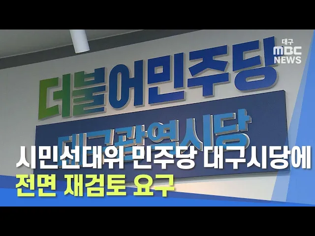 민주당 대구시당의 선대위 구성에 반발하는 '시민선대위' 준비위원회측은 선대위 구성을 사실상 전면 재검토할 것을 요구하고 있습니다.시민선대위 준비위 측은 대구시당이 사전 충분한 논의를 거치지 않고 독단적으로 선대위를 구성했다며 대구 각계 각 연령층을 포괄하는 선대위를 구성해야 한다고 주장하고 있습니다.시...