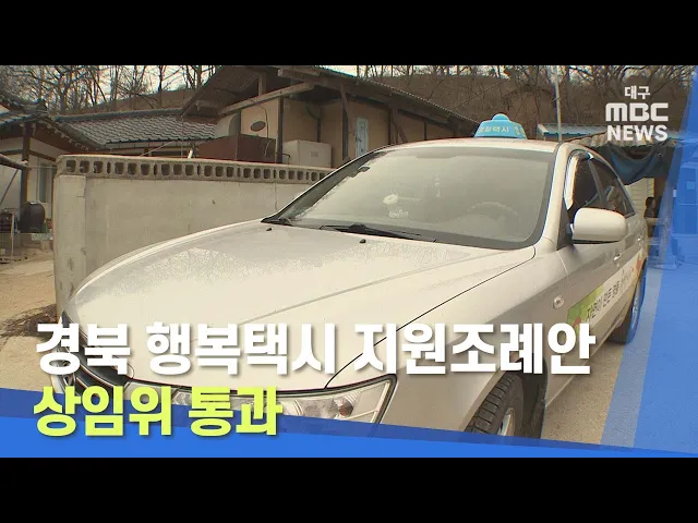 경상북도의회 박영서 의원이 대표 발의한 행복택시 지원 조례안이 상임위 심사를 통과했습니다.행복택시는 대중교통 소외지역에 사는 주민들의 교통 불편을 줄이기 위해서 운행 시간이나 횟수를 이용자의 수요에 맞춰 탄력적으로 운행하는 택시 서비스입니다.경북 도내 23개 시·군이 자체 예산이나 국비 지원을 받아 운영중...