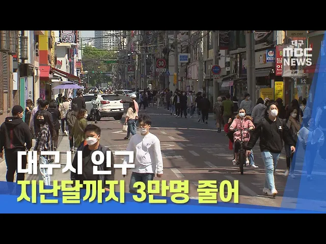 대구시의 인구가 급격하게 감소하고 있습니다.대구시에 따르면 주민등록에 따른 대구시 인구는 올해 11월말 기준 238만 8천명입니다.지난해 12월 241만 8천명에서 11개월 만에 3만명이 줄었습니다.지난 6월말 기준 239만 7천명으로 6개월 만에 2만명이 줄었고 다섯달 뒤 다시 만명 정도가 더 줄었습니다.