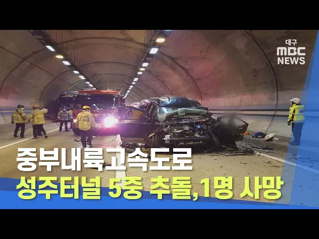 오늘 오전 9시 6분쯤 중부내륙고속도로 상행선 76.7킬로미터 지점 성주터널 안에서 스타렉스 차량이 앞서가던 3.5톤 화물차를 들이받는 등 차량 5대가 연쇄 추돌하는 사고가 발생했습니다.이 사고로 스타렉스 차량에 타고 있던 외국인으로 추정되는 여성 1명이 숨지고 나머지 차량에 탄 8명이 중경상을 입고 인근 병원으로 ...