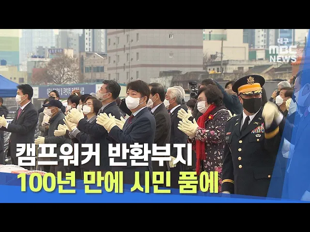 ◀앵커▶주한미군 캠프워커 땅 일부가 100년 만에 시민 품으로 돌아왔습니다.지난해 반환에 합의한 뒤 1년 만인데요, 시민들이 지켜보는 가운데 오늘 부대 담장을 허무는 행사가 열렸습니다.돌려받은 땅에는 대구 대표도서관이 들어서고 20년 넘게 막혀있던 도로를 낼 예정이어서 지역 발전에 대한 기대감이 커지고 있습니다....