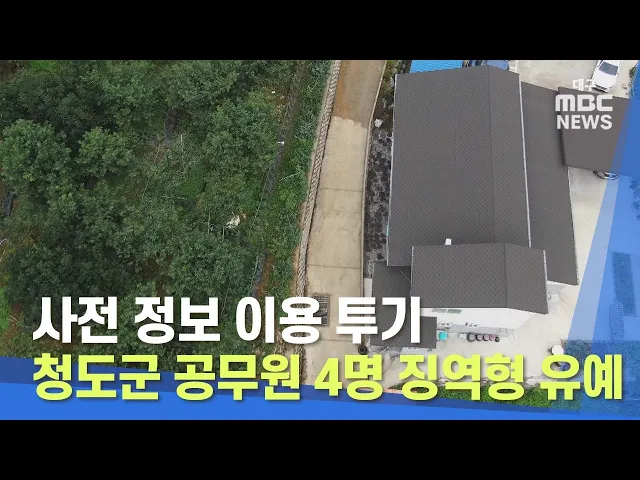 내부 정보를 이용해 부동산 투기를 한 혐의로 재판에 넘겨진 청도군 공무원들이 징역형 집행유예를 선고받았습니다.대구지법 제 1형사단독 이호철 부장판사는 부패방지법 위반 등 혐의로 기소된 청도군 공무원 A 씨 등 2명에게 징역 1년, B 씨 등 2명에게 징역 10개월을 선고하고 2년간 피고인들의 각 형의 집행을 유예했습...
