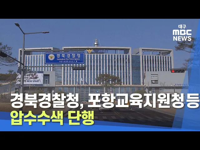 경북경찰청 반부패경제범죄수사대는 어제 포항교육지원청 및 도교육청 일부 부서와 전현직 공무원들에 대해 압수수색을 했습니다.경찰은 2020년 2월 포항 모 유치원 땅 선정 과정에 위법사항 여부를 확인하기 위해서라고 압수수색 이유를 밝혔습니다.
