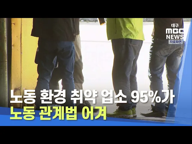 대구지방고용노동청이 대구와 경북지역의 노동 환경 취약 업소 146곳을 근로 감독한 결과 95%인 140곳에서 노동 관계법을 어긴 것으로 나타났습니다.한 곳당 평균 법 위반 건수는 4.5건, 노동자에게 덜 지급한 돈은 9억5천여만 원으로 조사됐습니다.일부 공공기관에서는 여전히 공무원 보수 규정을 준용해 연장근로수당과 ...