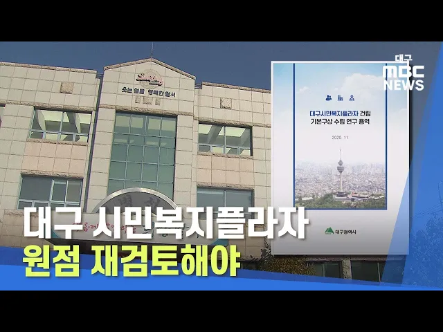 대구문화방송이 연속 보도한 대구시장 복지 공약 가운데 하나인 대구 시민복지플라자 건립을 원점에서 재검토해야 한다는 지적이 나왔습니다우리복지시민연합은 성명을 내고 "당초 예산 76억 원에서 226억 원으로 세 배 늘어난 과정도 불투명하고 시민 참여 공간의 내용도 대단히 부실하다"고 주장했습니다."복지역사관에는...