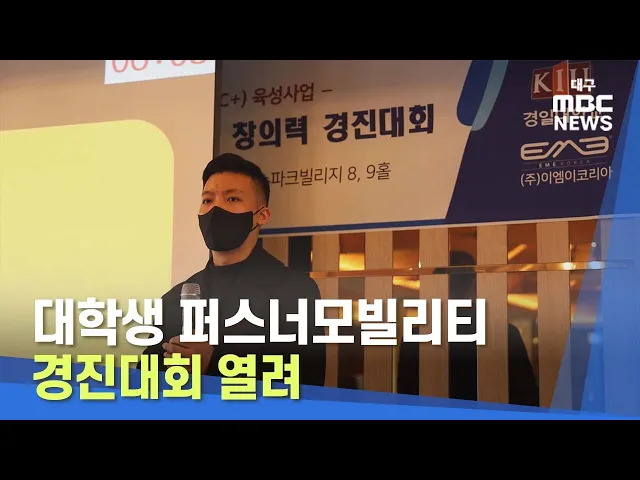 대학생들의 아이디어를 개인용 이동수단으로 제품화하기위한 제1회 대학생 퍼스널모빌리티 창의력 경진대회가 어제 대구 인터불고 호텔에서 열렸습니다.경일대학교와 국내 유일의 개인용 이동수단 업체가 공동주관한 이번 행사에는 대학생 20개팀이 참가해 5팀이 시상했습니다.이번 경진대회를 통해 선발된 대학생들의 아이...