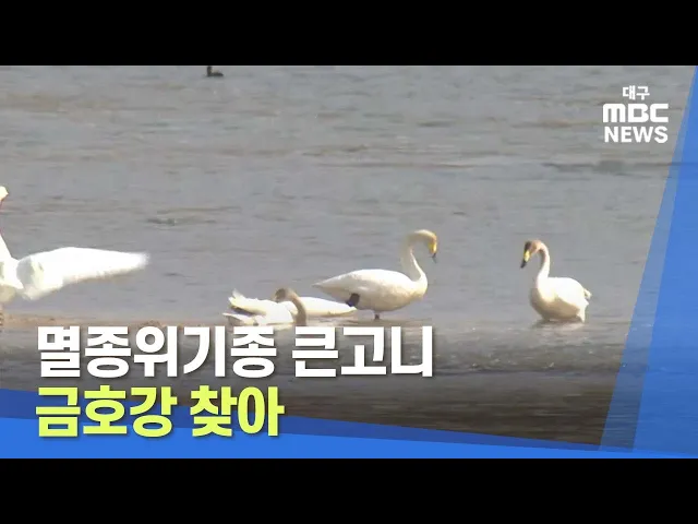 유라시아 대륙과 아이슬란드 등에서 번식하는 천연기념물이자 멸종위기종인 큰고니 30개체가 월동을 위해 금호강 무태교 일대에 찾아왔습니다.무태교 인근은 금호강과 신천이 합류하는 지점으로, 다양한 야생동물이 서식하거나 은신처로 이용하기 충분한 모래톱이 형성돼 육안으로도 쉽게 겨울 철새를 관찰할 수 있는 장소...