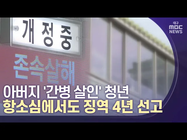 ◀앵커▶병든 아버지를 방치해 숨지게 한 이른바 '간병 살인'을 저질러 재판에 넘겨진 대구의 20대 청년이 항소심에서도 원심과 같은 징역 4년형을 선고받았습니다.정치권을 중심으로 동정 여론이 퍼지기도 했는데 재판부는 살인의 고의가 인정된다고 판단했습니다.권윤수 기자가 취재했습니다.◀권윤수 기자▶뇌졸중과 뇌출혈...