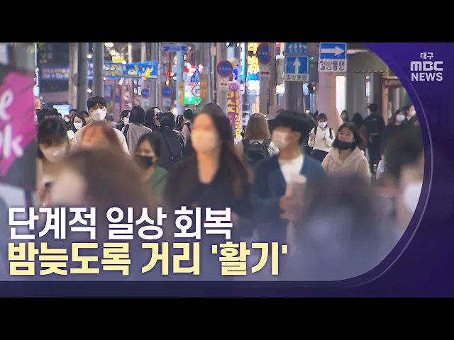 ◀앵커▶여러분 안녕하십니까? 대구경북 소식 전해드립니다.제 뒤를 보시면요, 단계적 일상회복 첫날인 어제 저녁 대구 동성로 모습입니다.거리에는 사람들이 부쩍 늘었고, 상점에도 불이 켜진 곳이 많습니다.단계적 일상회복이 시작된 지 이틀째, 시청자 여러분 일상에는 어떤 변화가 있으십니까?식당과 카페에는 영업 시간...