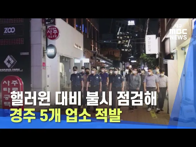 경상북도와 경주시가 핼러윈 기간을 앞두고 경주의 외국인 밀집 지역을 불시 점검해 5개 업소를 적발했습니다.가벼운 위반을 한 4개 업소는 현장에서 시정 조치를 하고, 영업시간 제한을 위반한 유흥주점 1곳은 형사 고발했습니다. 점검반은 외국인 거주 밀집지역인 경주시 성건동과 동천동, 황성동 지역 식당과 카페, 유흥...