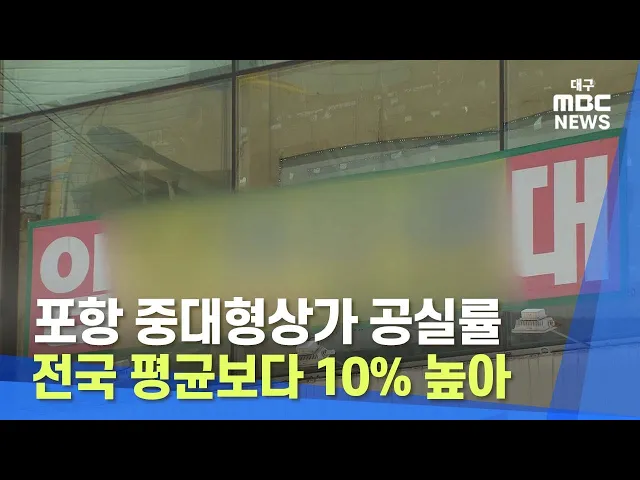 포항지역의 중대형상가 공실률이 20%를 넘는 것으로 나타났습니다.한국부동산원이 발표한 3분기 중대형상가 지역별 공실률에 따르면, 포항 도심은 23.2%로 전국 평균 공실률이 13.3%보다 10% 가까이 높고, 경북지역 평균인 19.3%와 비교해도 크게 높습니다.포항시 북구 양덕동 상권의 중대형상가 공실률이 18.1%, 영일대해...