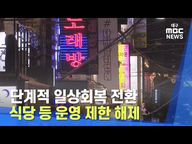 단계적 일상회복 전환으로 오늘부터 대구에서도 식당과 카페, 노래연습장과 목욕장업의 운영 제한이 해제됩니다.유흥시설과 콜라텍 무도장 등은 자정까지만 운영할 수 있습니다.단 유흥시설과 노래연습장, 실내체육시설과 목욕장업, 경마, 경륜, 카지노 등 일부 고위험시설에 대해서는 접종 완료자와 검사 음성자만 이용할 ...