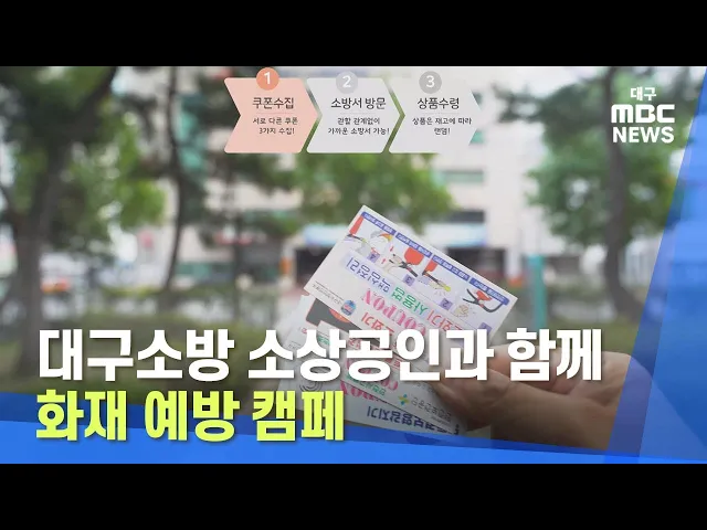 대구소방안전본부가 코로나 19로 힘든 소상공인들과 함께 화재 예방 캠페인을 진행하고 있습니다.이번 연말까지 대구소방안전본부와 협약을 맺은 식당과 카페, 미용실 등 다중이용시설 163곳을 이용하면 '안전쿠폰'을 받고 종류별로 쿠폰 3개를 모아 소방서에 내면 휴대용 소화기나 코로나 19 예방 키트를 상품으로 줍니다....
