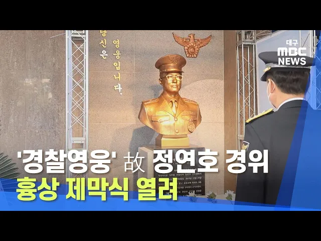 대구수성경찰서가 오늘 청사 현관에서 2021년 올해의 경찰 영웅으로 선정된 고 정연호 경위의 흉상 제막식을 열었습니다.정 경위는 2017년 12월 극단적인 선택을 하려던 시민을 구하려다 아파트 9층에서 떨어져 순직했습니다.경찰청은 순직 경찰관에 대한 예우 차원에서 2017년부터 경찰 영웅을 선정해 흉상을 건립하고 있...