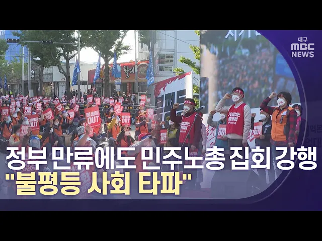 ◀앵커▶정부가 만류했지만, 소용없었습니다. 민주노총이 총파업을 선언한 가운데 대구에서도 대규모 집회가 열렸습니다.걱정했던 충돌은 일어나지 않았지만, 교육과 산업 현장에 일부 차질이 빚어졌습니다.이들은 비정규직 철폐와 공공성 강화 같은 전국적인 이슈를 제기했고, 한국게이츠와 한국장학재단콜센터의 노동 현안 ...