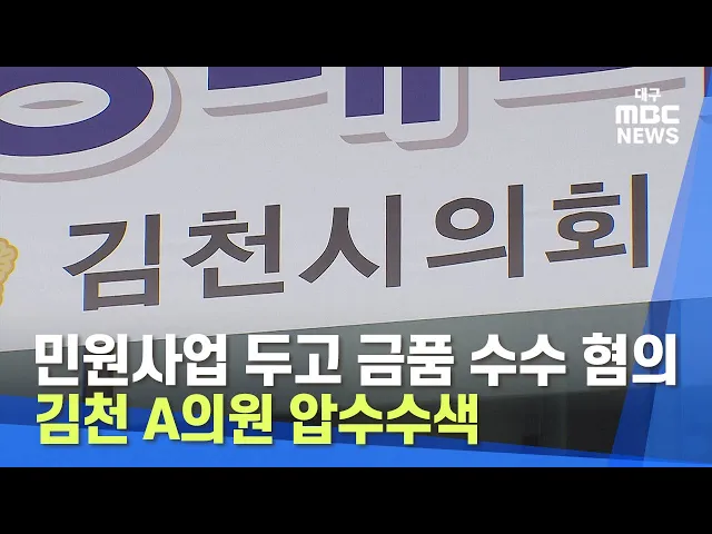 민원성 사업을 두고 주민들에게 금품을 받은 혐의로 경북 김천시의원이 경찰 수사를 받고 있습니다.경북경찰청 반부패수사대는 어제 김천시의회 A의원 주거지와 사무실을 압수수색했습니다.A의원은 지난해 지역 노후주택을 매입해 주차장으로 만드는 김천시 사업을 앞두고, 사업부지 선정을 희망하는 땅 주인들로부터 금품...