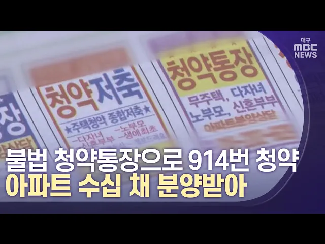 ◀앵커▶여러분 안녕하십니까? 대구·경북 소식 전해드립니다.불법으로 사들인 청약통장으로 아파트를 분양받아 수억 원의 부당이득을 챙긴 부동산 투기 일당이 경찰에 붙잡혔습니다.청약시장은 생애 한 번 당첨되기도 어려워 '로또'라고 불리는데요,투기 일당은 2년 동안 무려 900차례 넘게 청약을 넣어서 47번이나 당첨됐습...